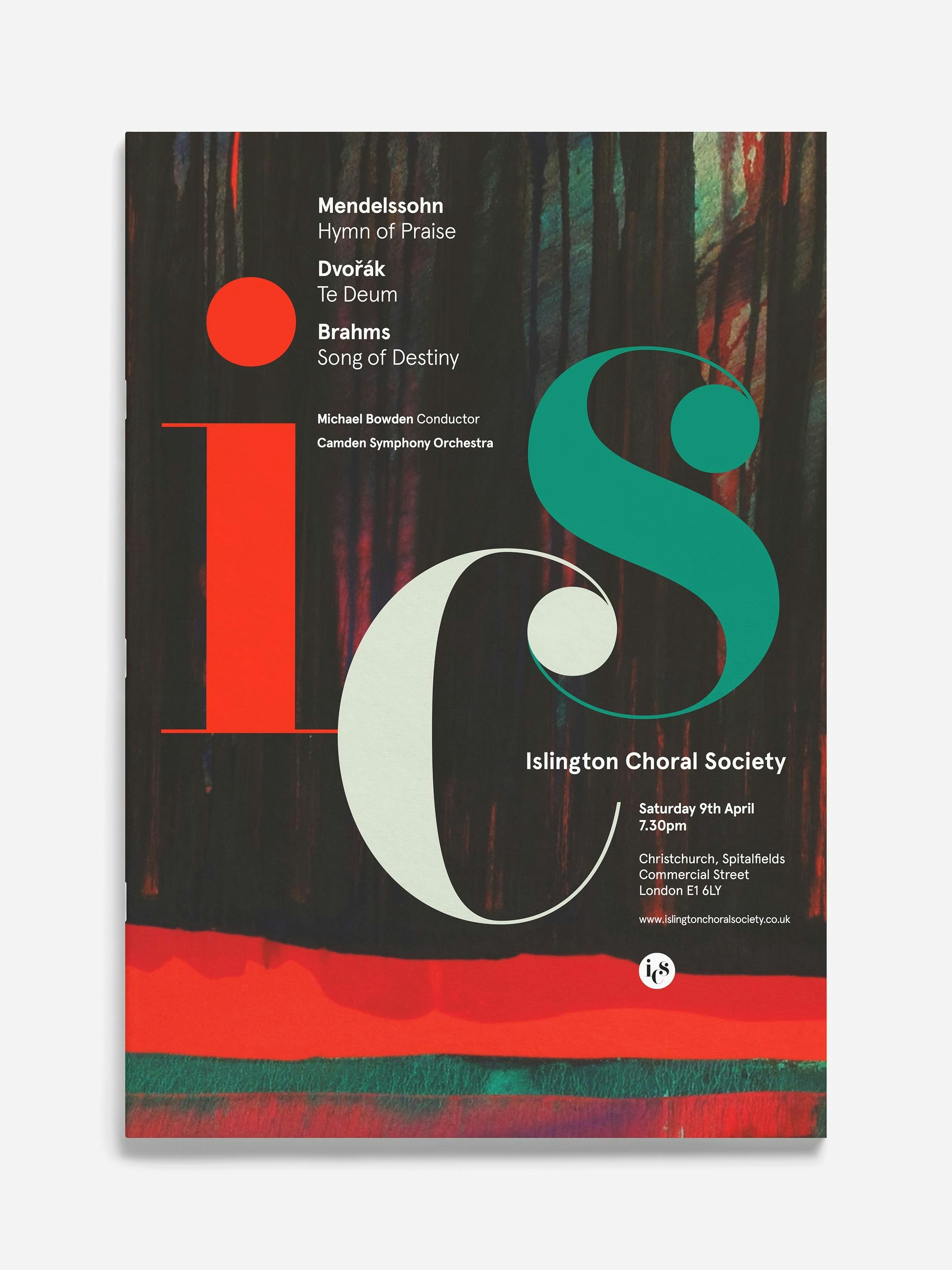 Islington Choral Society was founded in 1973 and marked its 40th anniversary in 2013 with a celebratory concert at Cadogan Hall. The choir performs a wide variety of choral works from all periods, including contemporary music. Our identity is inspired by musical notation can be played as a sequence of three individual notes.